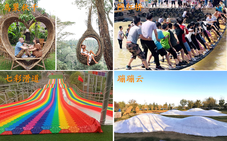 网红设备是所有乐园里最受欢迎的游乐设备项目了,比如说鸟巢秋千就是一个非常适合打卡拍照的设备;坑爹过山车那可真是一个既坑爹又坑妈的设备,但同时又能增进亲子之间的感情。除此之外,还有七彩滑道、小猪赛跑、网红桥、魔网、蹦蹦云等等。